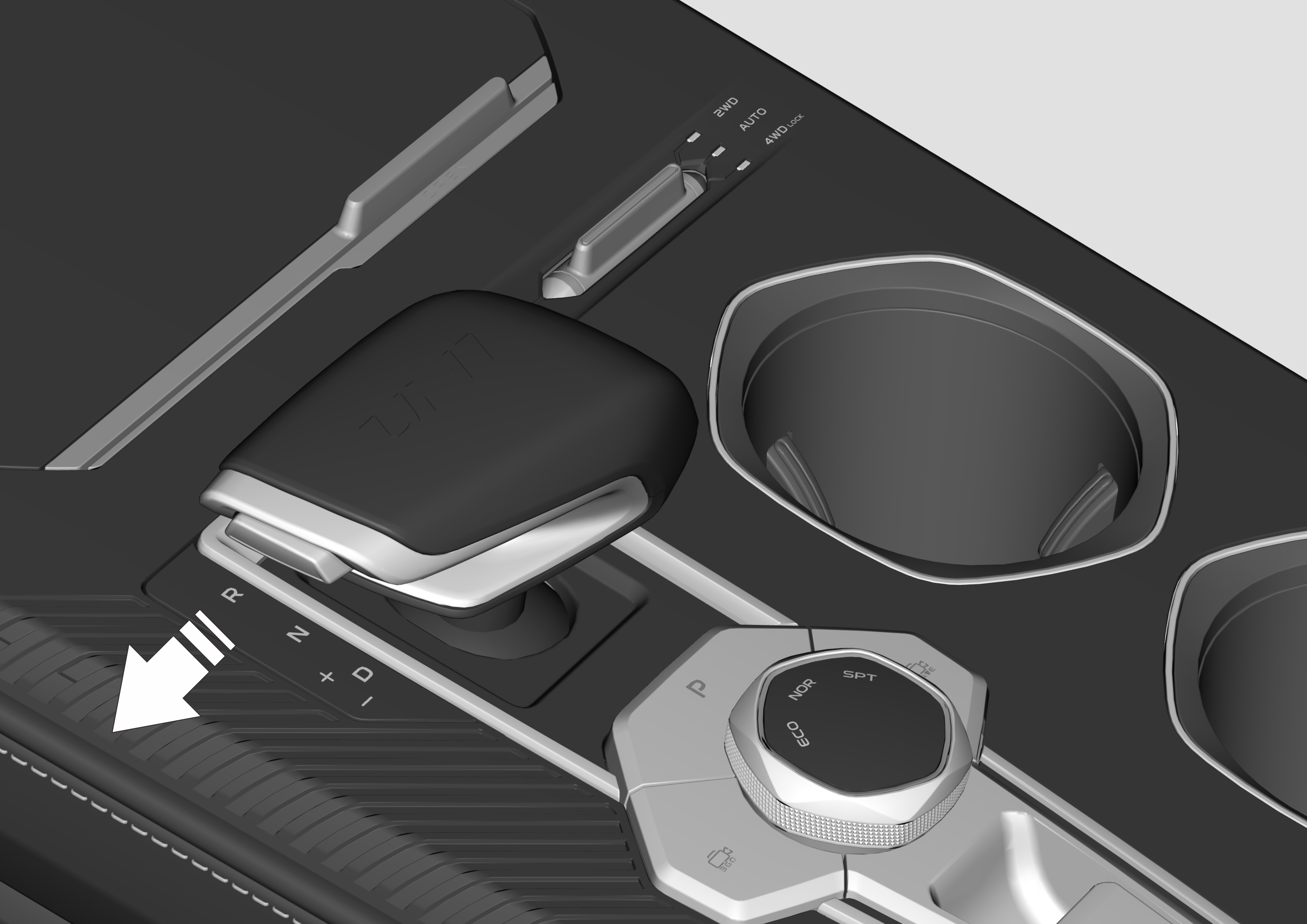 在D挡时,向左推动换挡杆,进入手动模式。