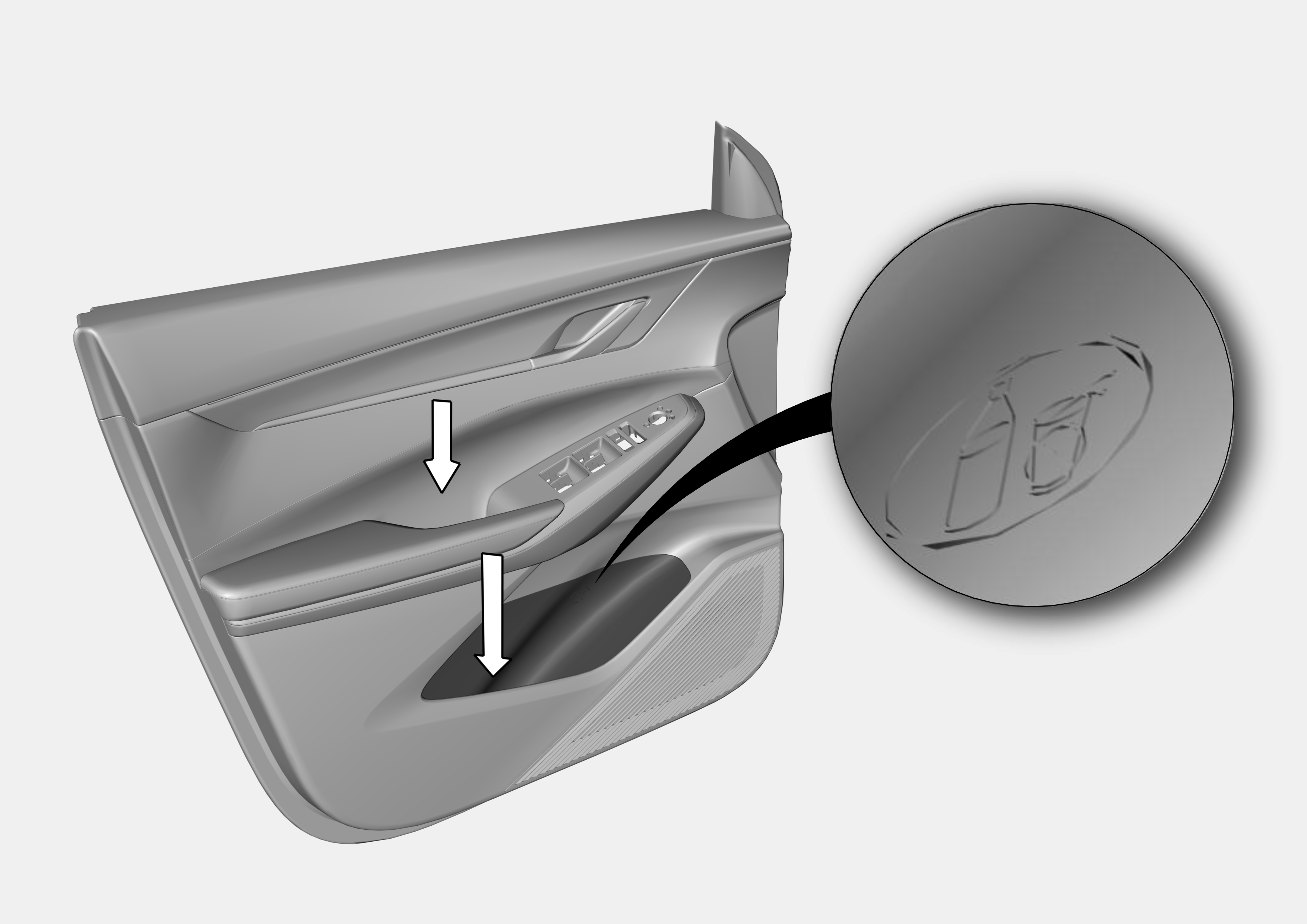 不要在车门内侧储物盒内放置易碎物品,在事故时可能增加伤害风险。 |
