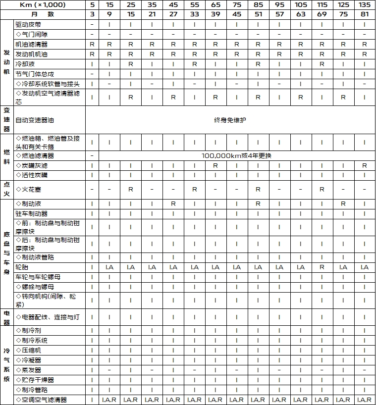 首保5000km或3个月,首保后,间隔保养周期为10000km 或6个月,以先到达者为准。