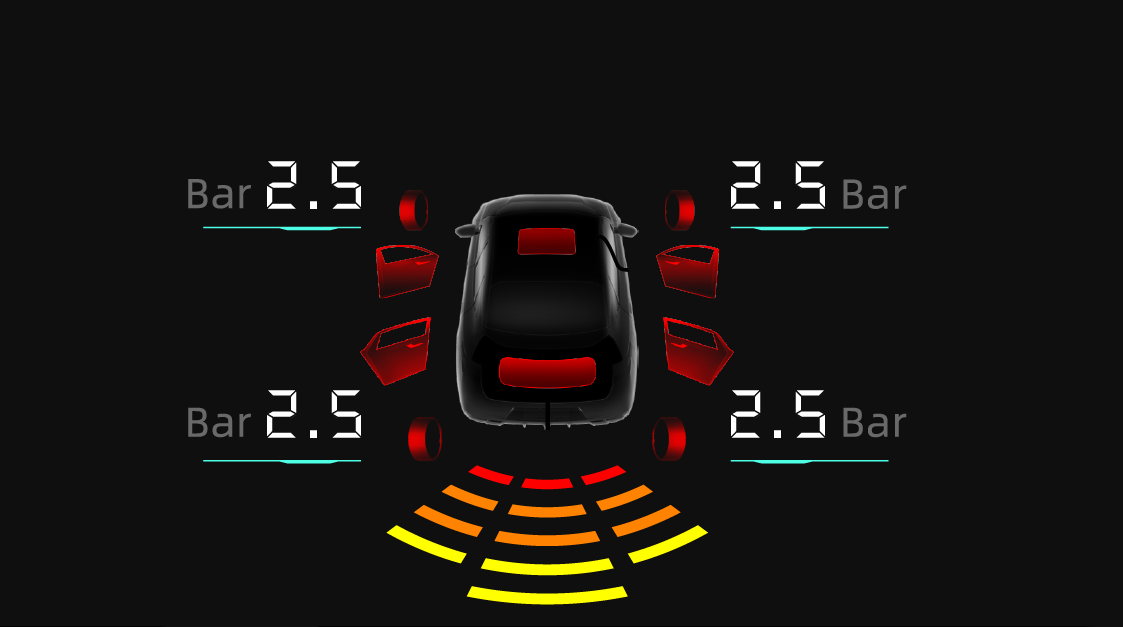 电源挡位为ON挡,挂倒挡,泊车雷达识别到障碍物,根据障碍物距离本车的距离提示不同频率的报警音。