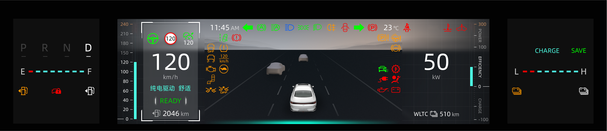 驱动状态:显示值为车辆总的使用功率,包括驱动功率、非驱动功率