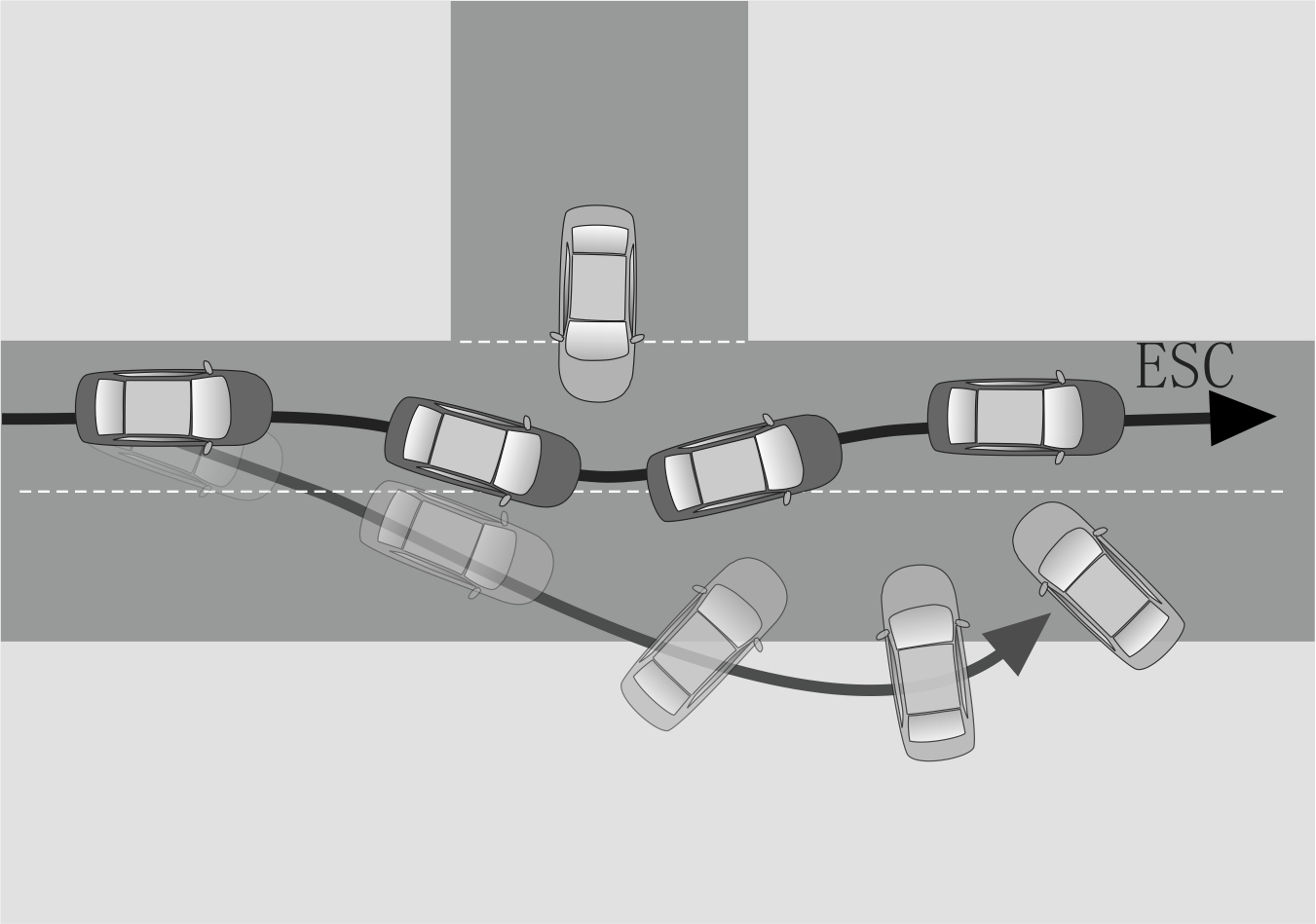 ESC系统利用传感器监测车辆状态,在车辆处于临界稳定状态下(如急转弯或急变道时),控制车轮的制动力矩或者发动机扭矩,提高车辆行驶稳定性,有效降低事故发生概率,提高行驶安全性。