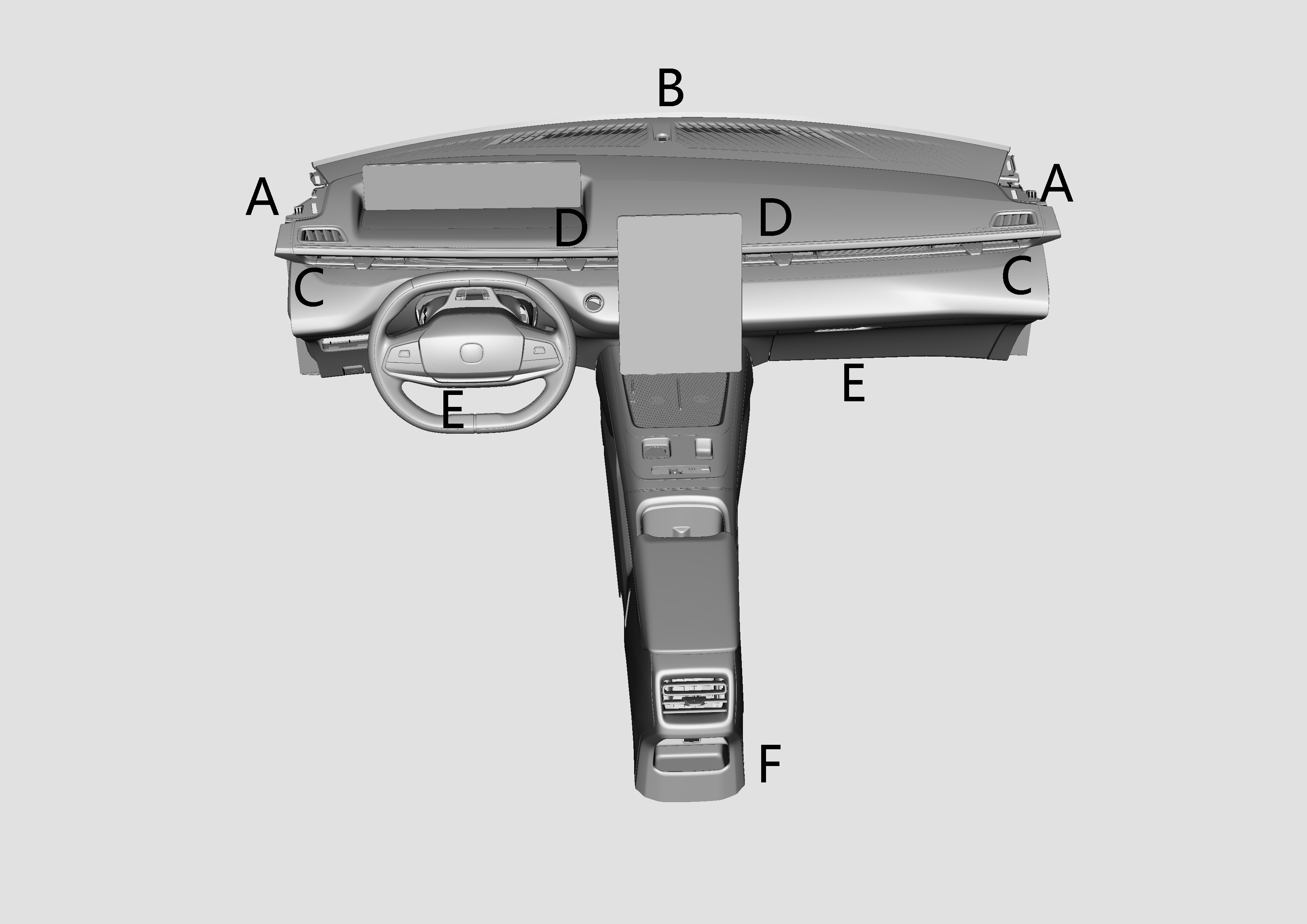 风主要从挡风玻璃除霜出风口、侧除霜出风口以及足部出风口送出。