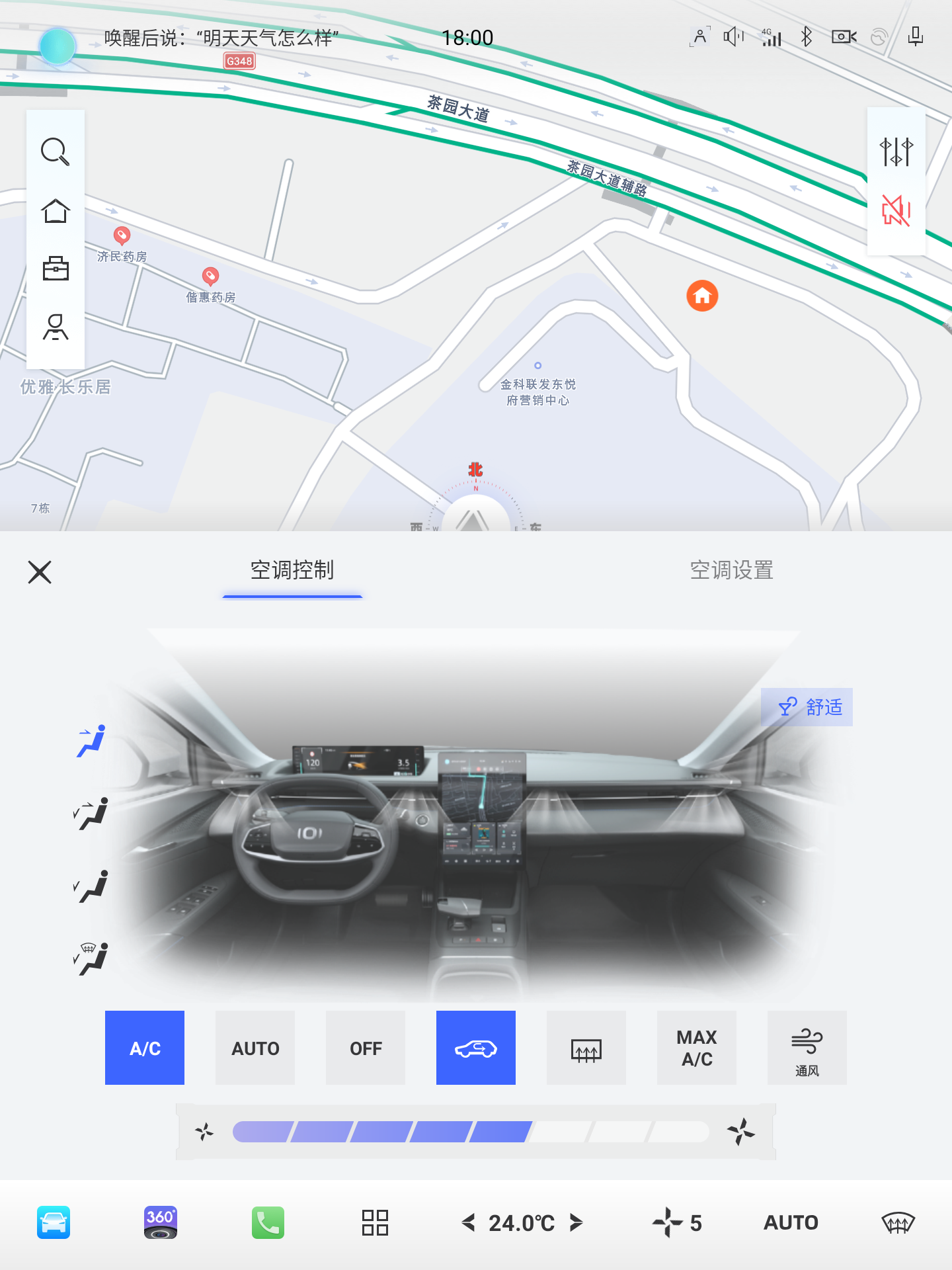 点击图标,空调可以在舒适模式和节能模式之间切换。相对于舒适模式,节能模式下空调能耗更低,但舒适性也略有降低。