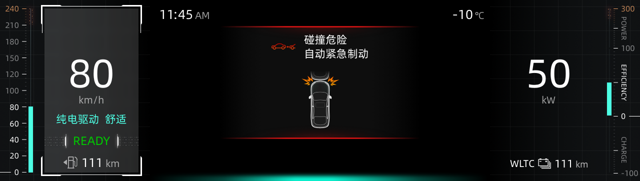 如果驾驶员制动力不足,自动紧急制动功能将辅助驾驶员制动;如果驾驶员完全未做出反应,自动紧急制动功能将主动施加制动以避免或减轻碰撞事故造成的伤害。