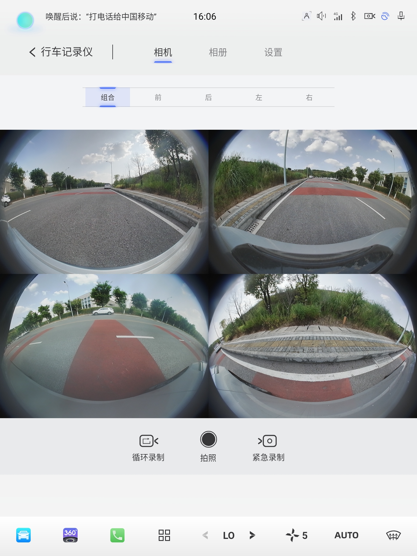 通过点击显示屏上的“环视行车记录仪”进入APP,进行循环录制开/关、拍照、设置及文件查看等操作。