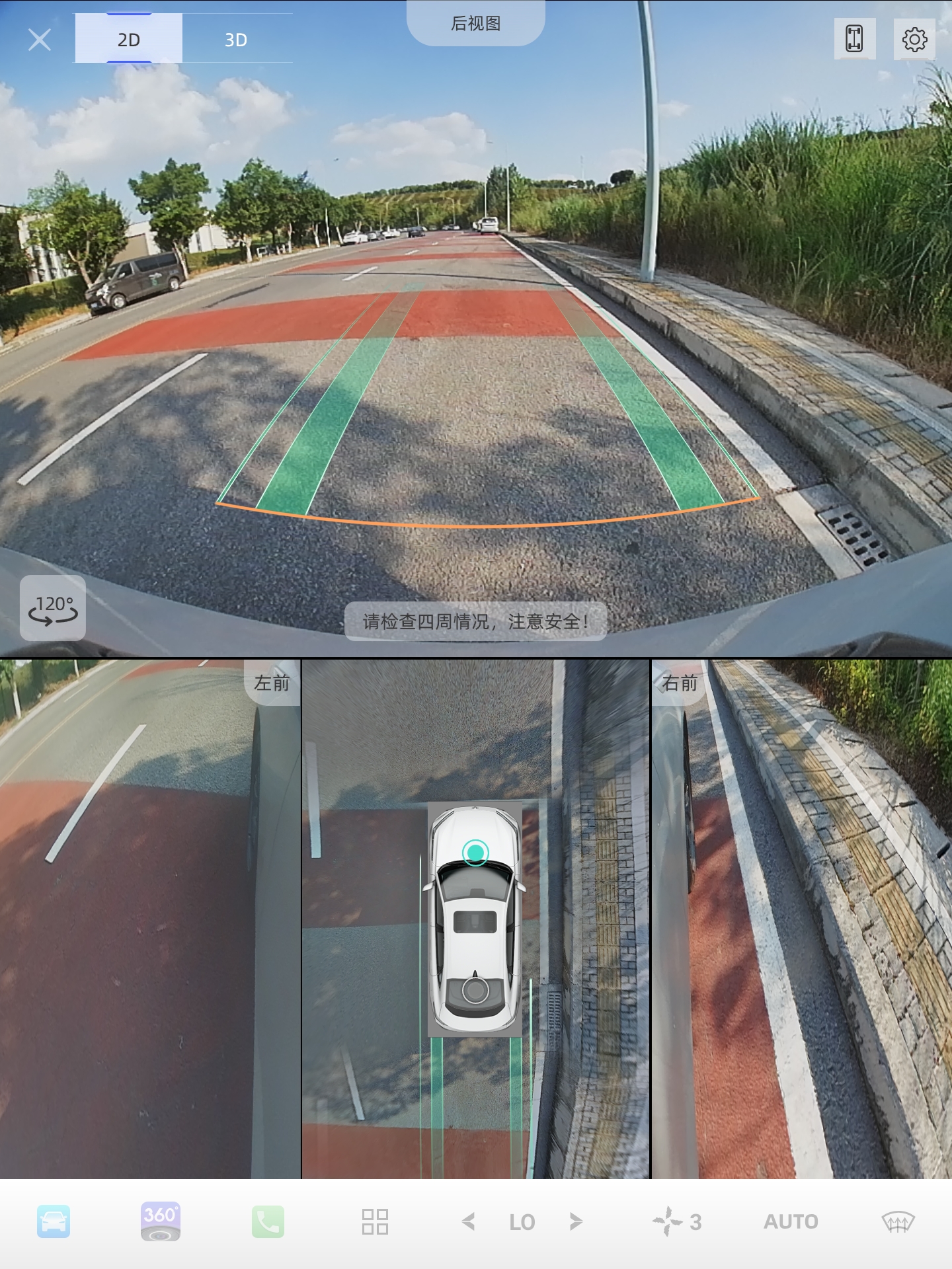 整车电源为ON挡时,影像记录默认开启。通过车载终端的触屏开关,可关闭/开启功能录影,拍摄的影像在车载娱乐终端上实时显示,用户可以通过相关界面完成设置/拍照/回放等操作。