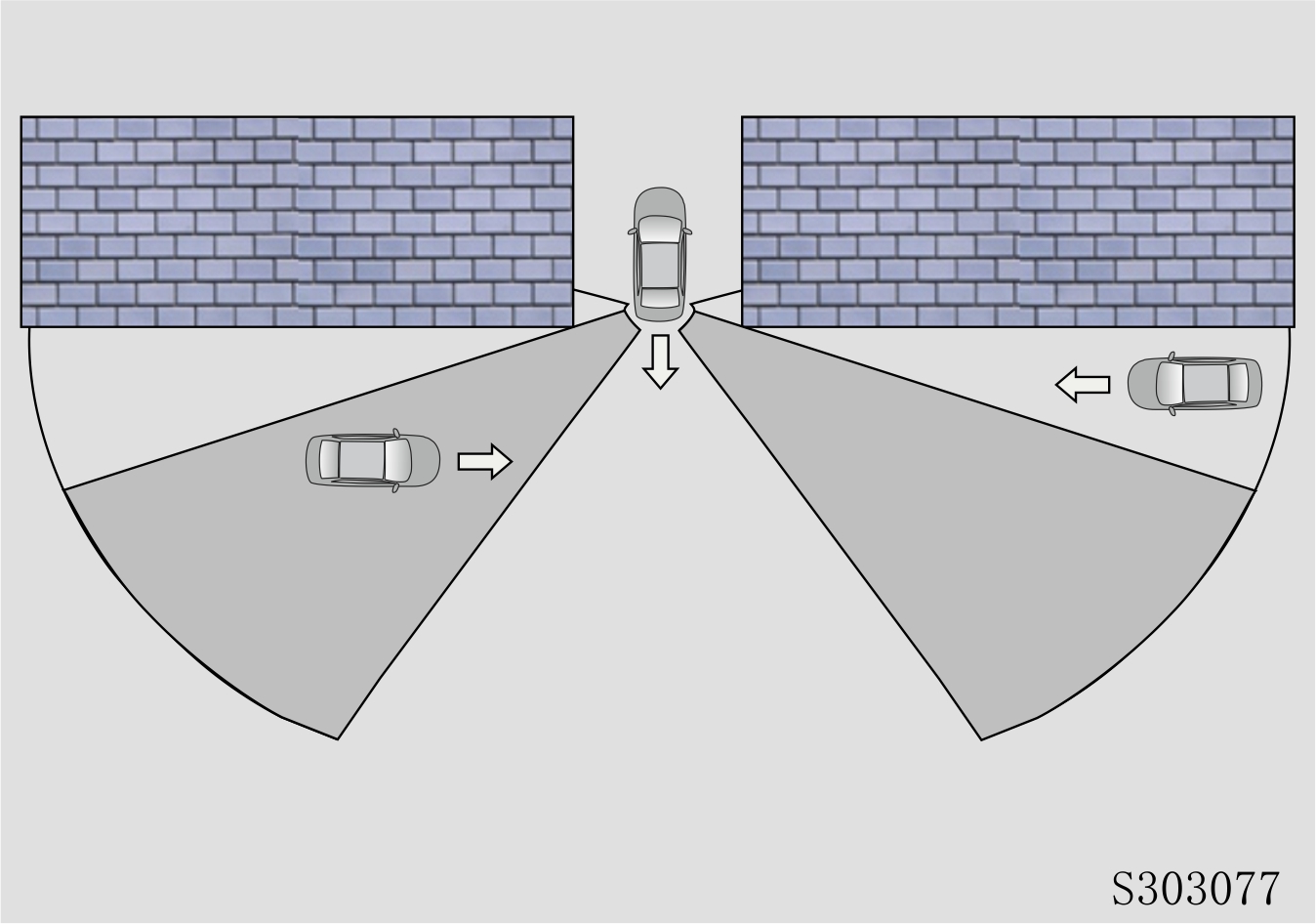 倒车横向预警功能并非在所有倒车环境下都能及时发出报警,在如下情况,由于周边物体的遮挡探测区域变小,目标车辆非常接近本车时,才可能激活报警。