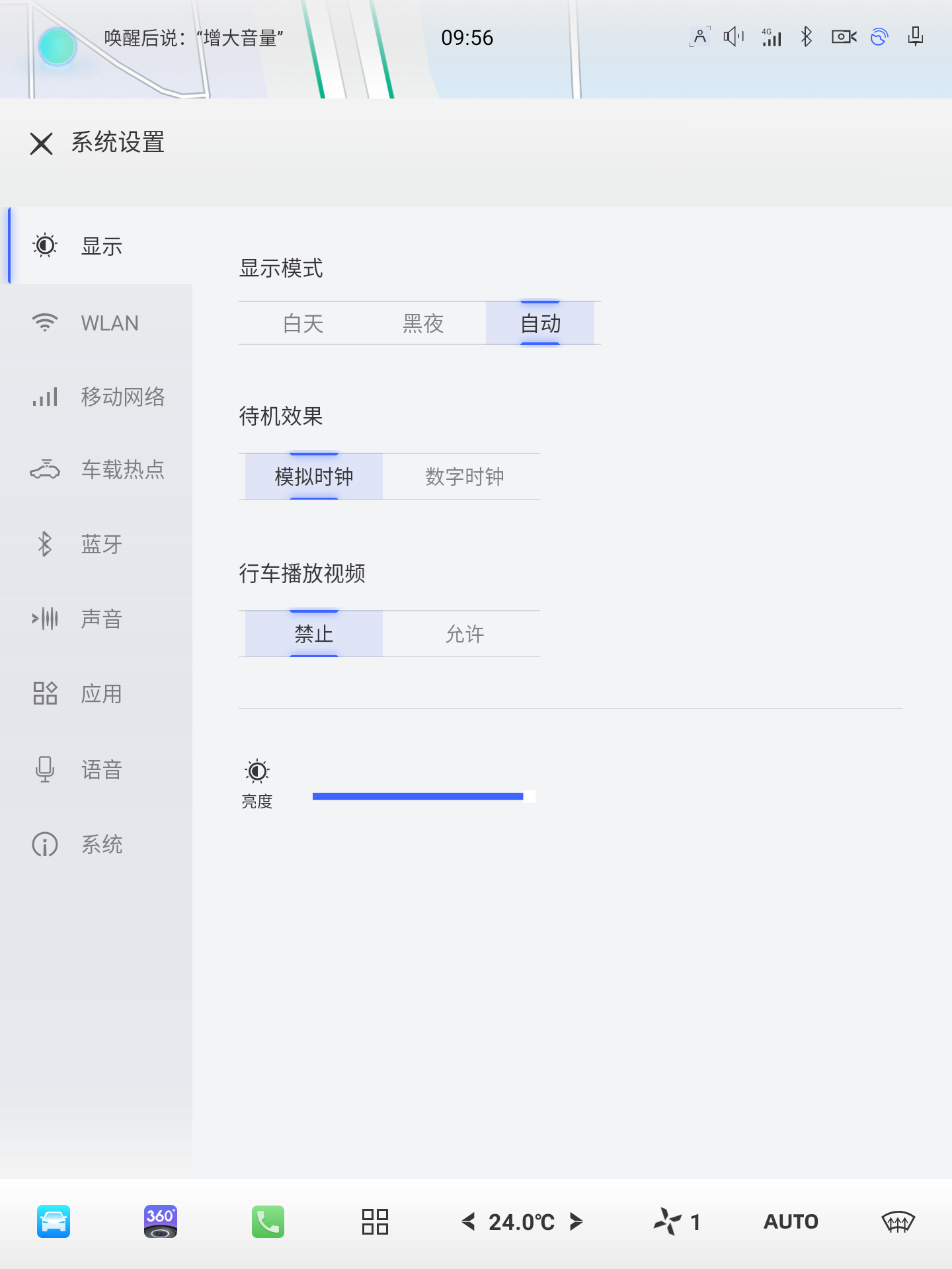 通过 APPlist 选择点击系统设置,可进行显示、网络、声音、语音、系统等设置或操作。