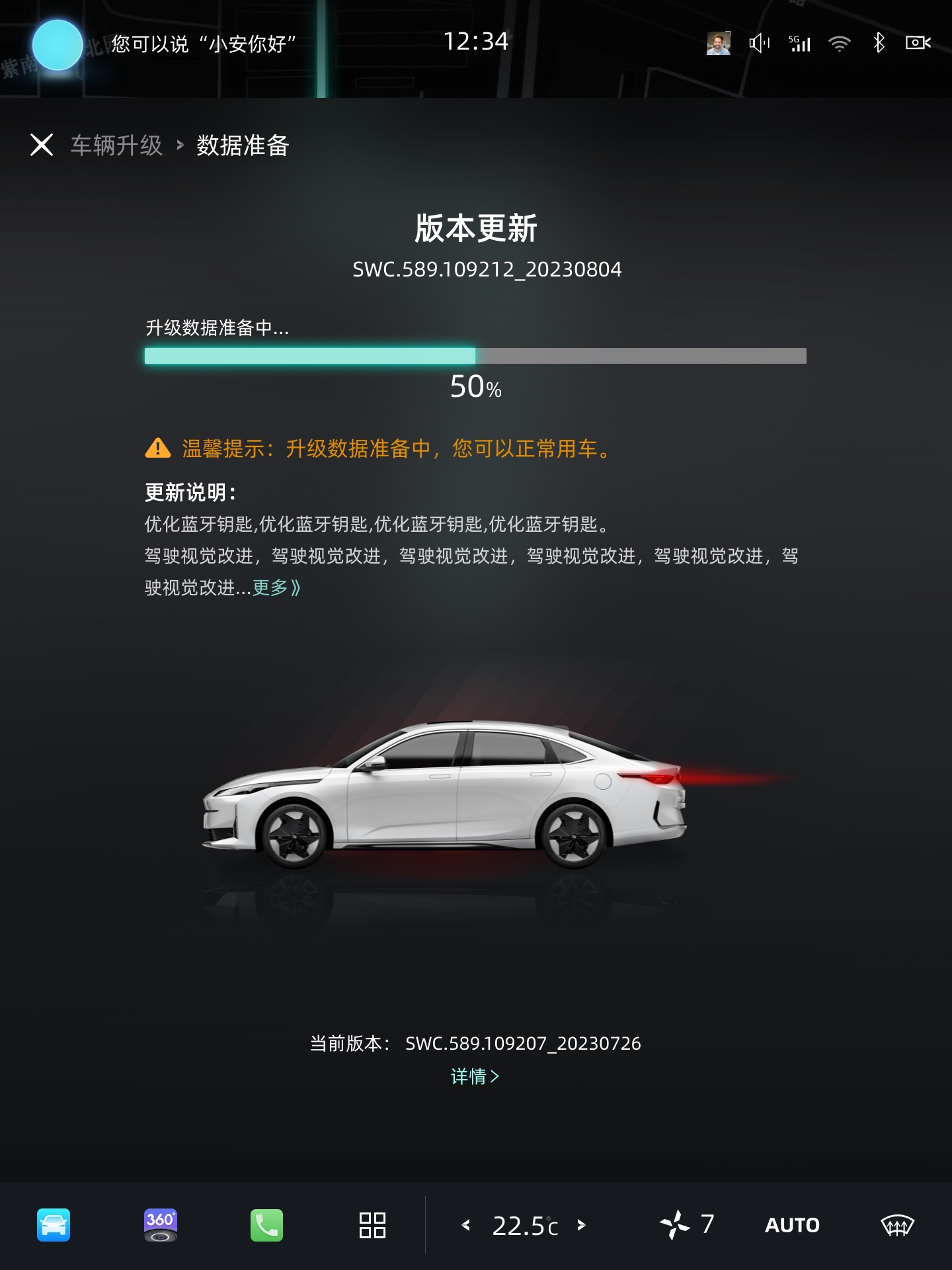 注意:更新下载步骤,不影响车辆正常使用,用户可以正常驾驶车辆和锁闭车辆,闭锁后下载中止,下次显示屏打开后继续下载,待下载完成后会主动提示用户升级。