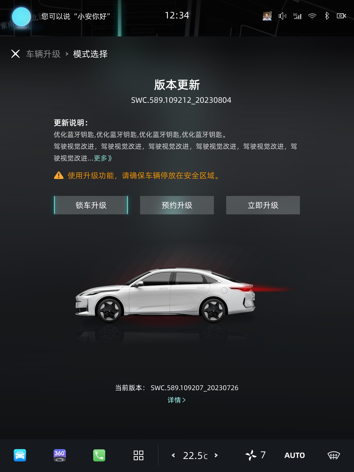 在系统有更新并下载完成后,可以进行车辆升级,有以下三种模式可供选择: