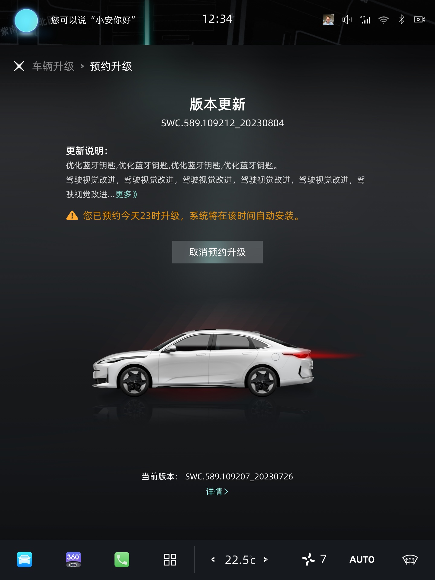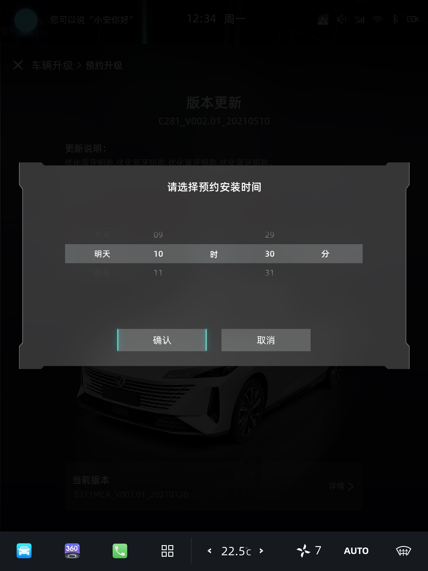 选择“预约升级”按钮后,可预约车辆空闲时间进行升级:
