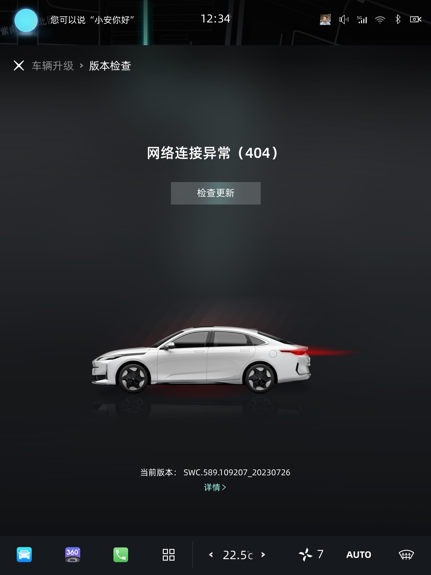 若版本检测阶段界面提示“检测更新异常”并显示故障码, 请咨询长安启源授权服务网点。