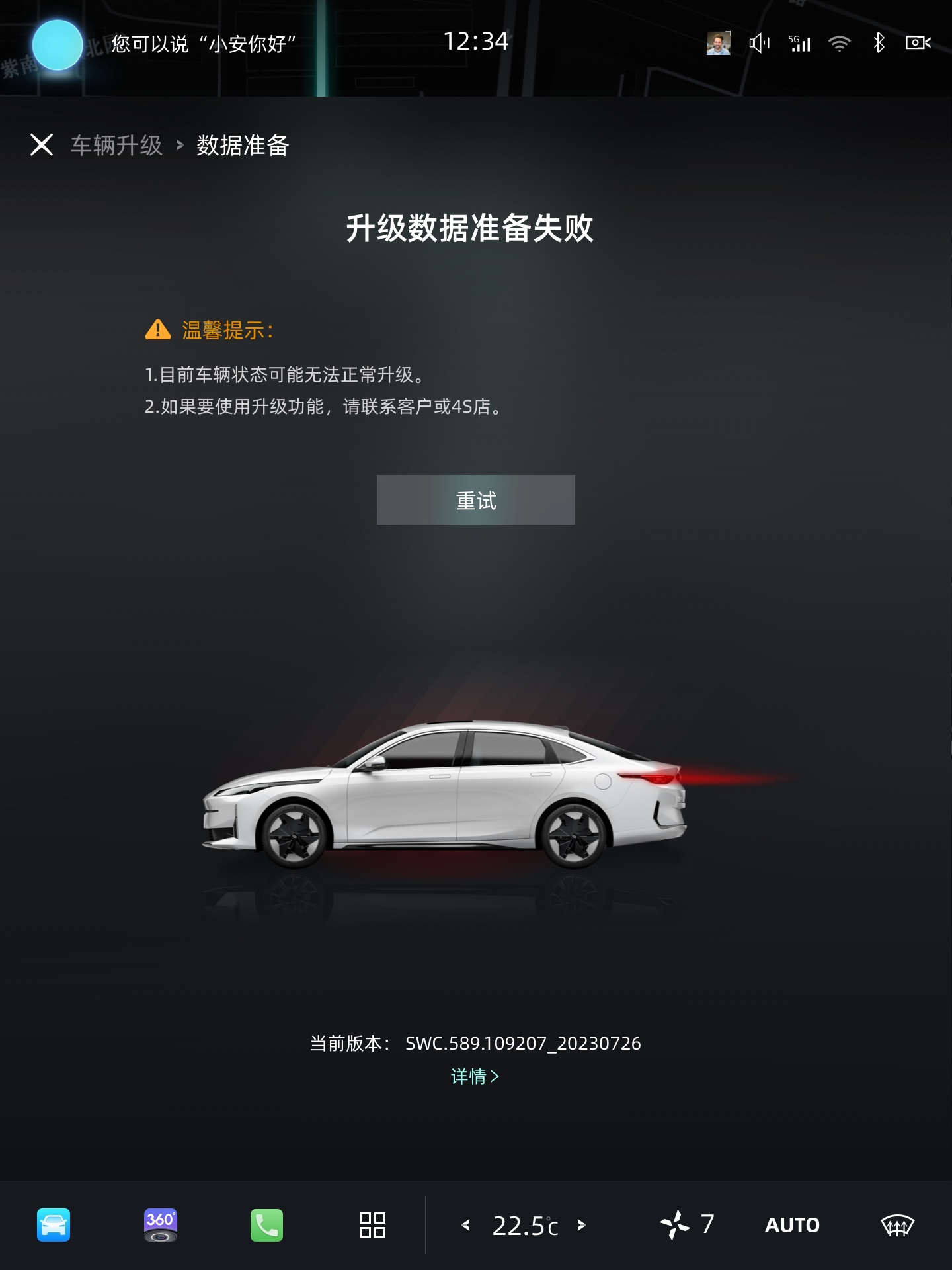 若提示为网络问题,请参见上节内容;若非网络问题,请尝试重试;若重试都失败,请咨询长安启源授权服务网点。