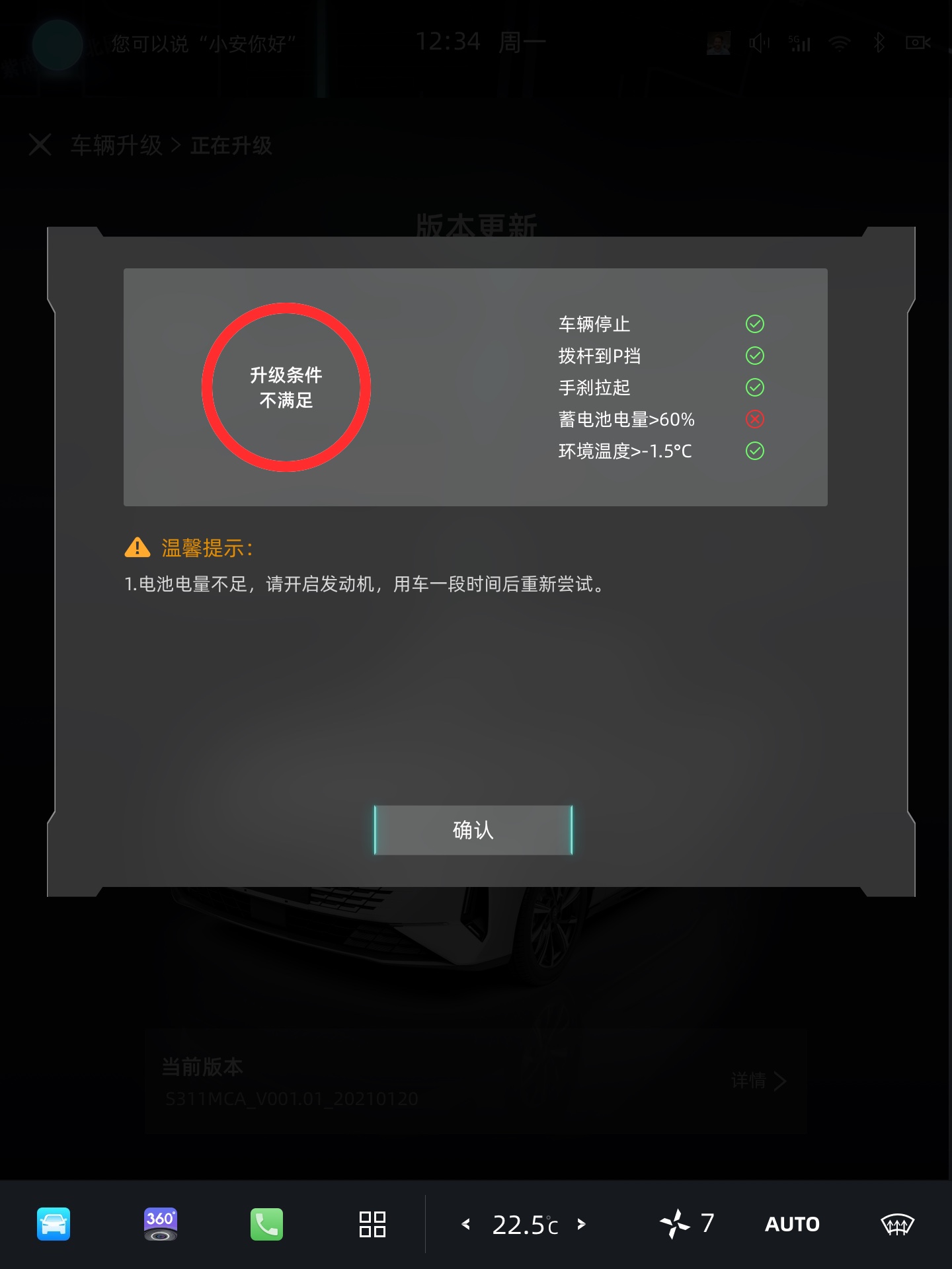 若已按照要求操作,仍旧提示“升级条件不满足”,请咨询长安启源授权服务网点。