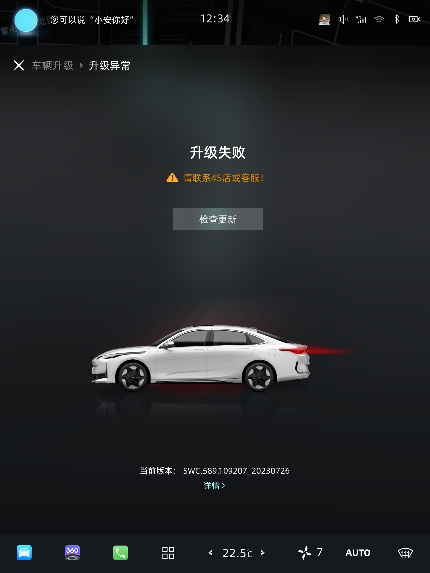 如遇到升级异常,请咨询长安启源授权服务网点。