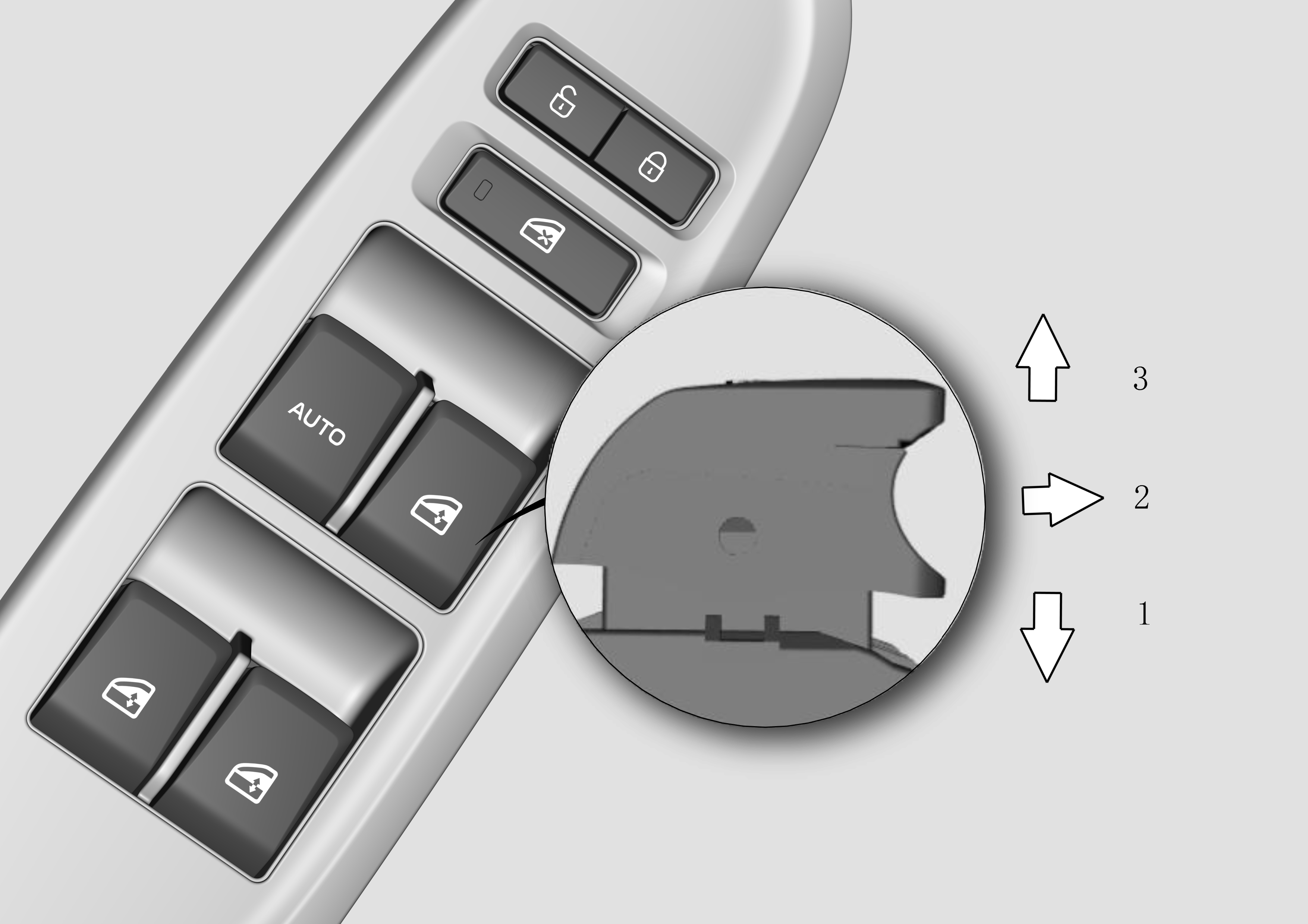 手动下降/上升式车窗开关有三个位置,功能从下至上分别为: