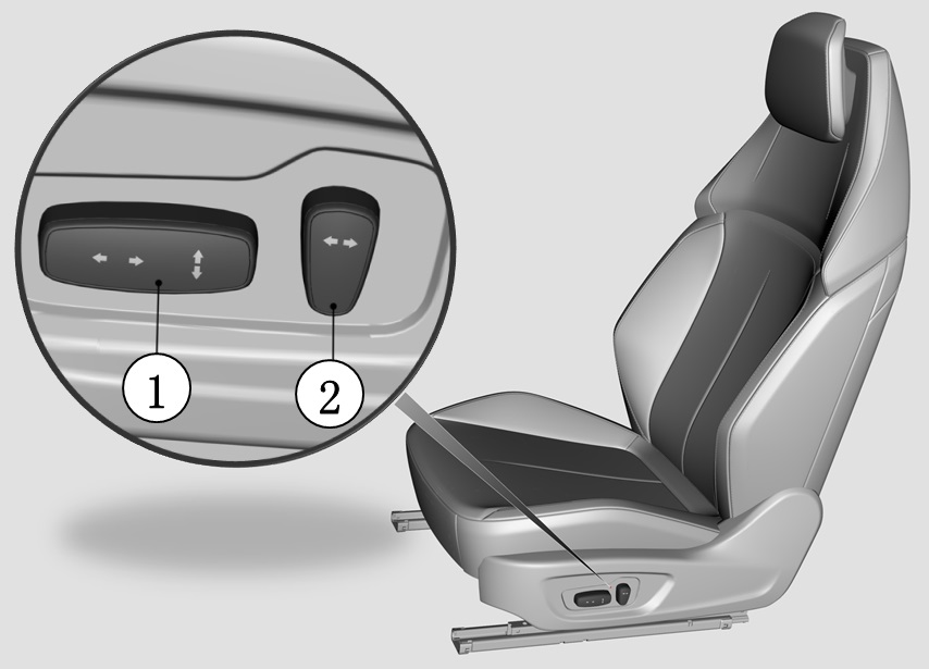 拨动控制开关1,调节座椅前后位置、高度(仅正驾座椅有高度调节功能)。