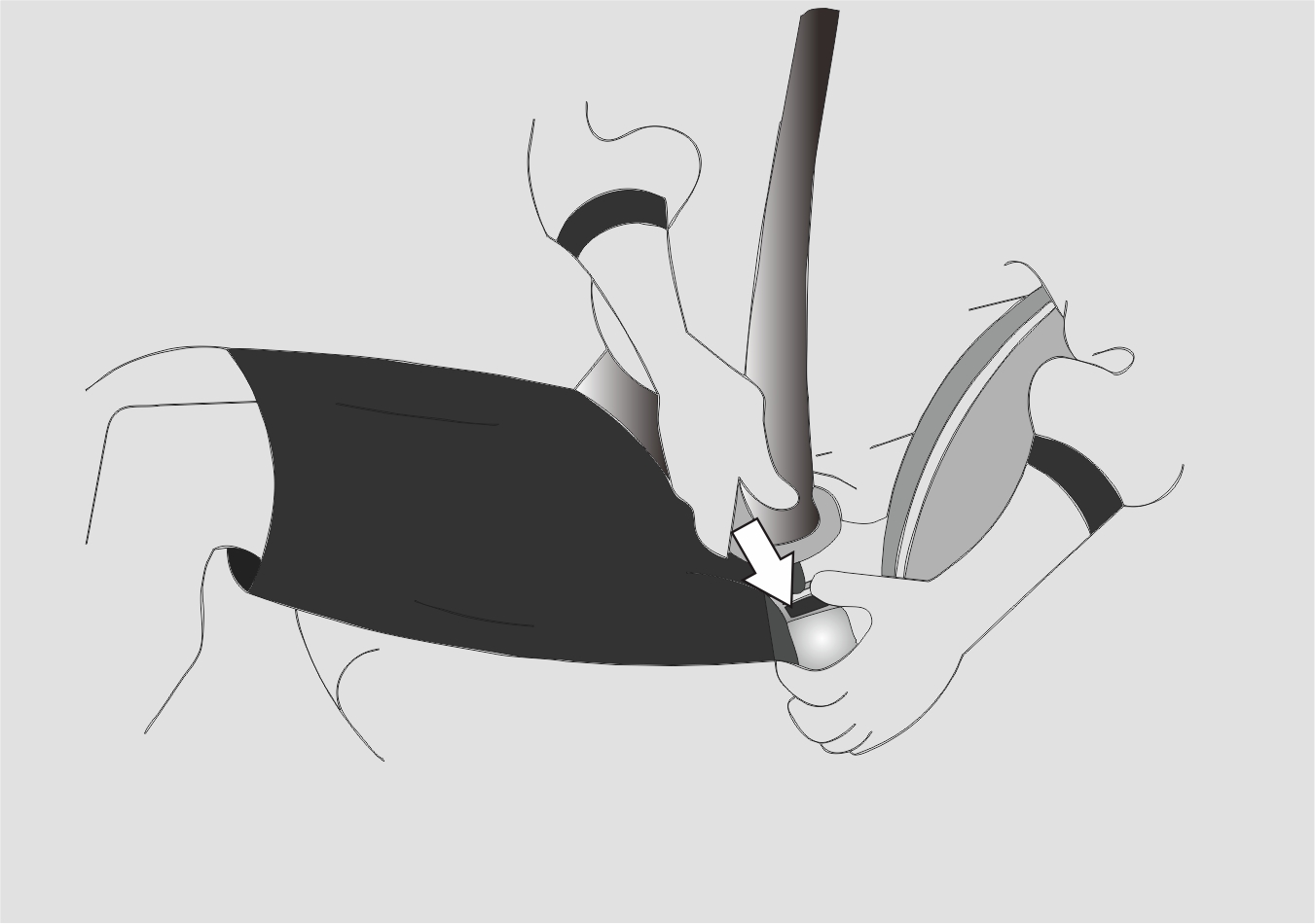 将肩带从胸部上方经胸部中间到怀孕者腹部的侧面。