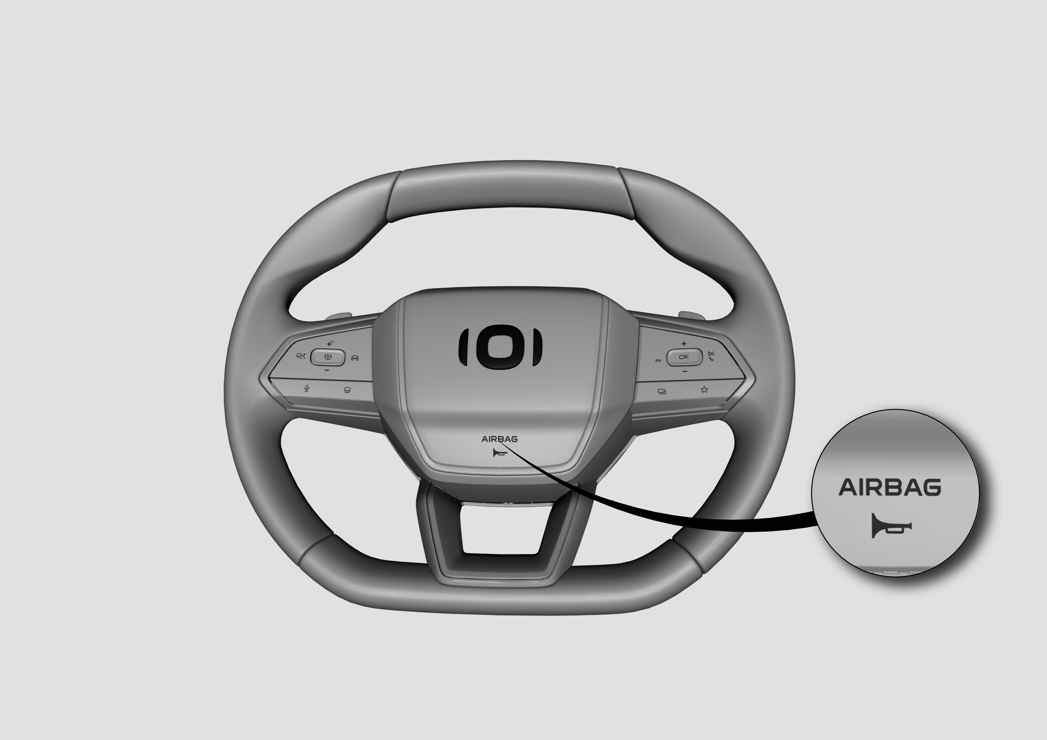 驾驶员安全气囊安装在方向盘内,气囊装饰盖上有 “AIRBAG”标识,发生正面碰撞并达到展开条件时展开。