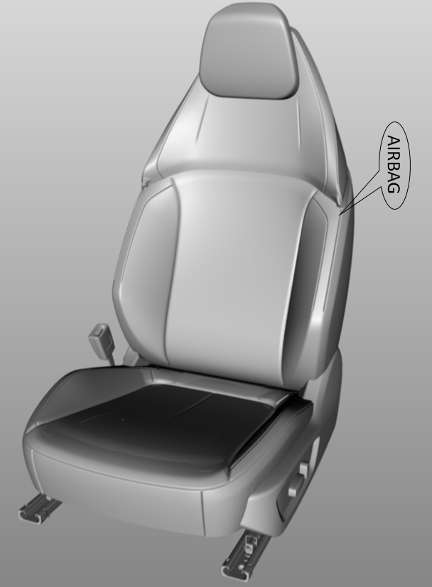 侧面安全气囊安装在座椅靠背内,座椅靠背侧面缝有 “AIRBAG”标识,发生侧面碰撞并达到展开条件时展开,在乘员和内饰件之间形成缓冲气袋为乘员胸部提供侧面保护。