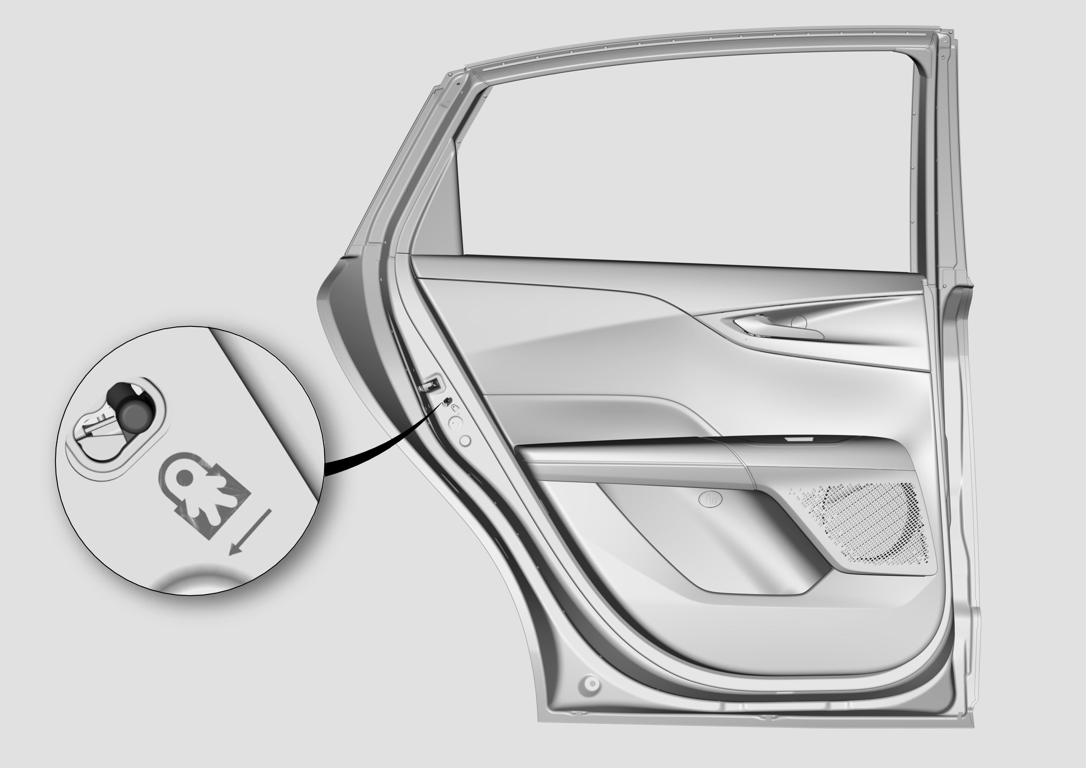 后排车门上的儿童安全锁可以单独锁止后排车门。启用后相应的后排车门将无法从车内打开,只能从车外打开后排车门。