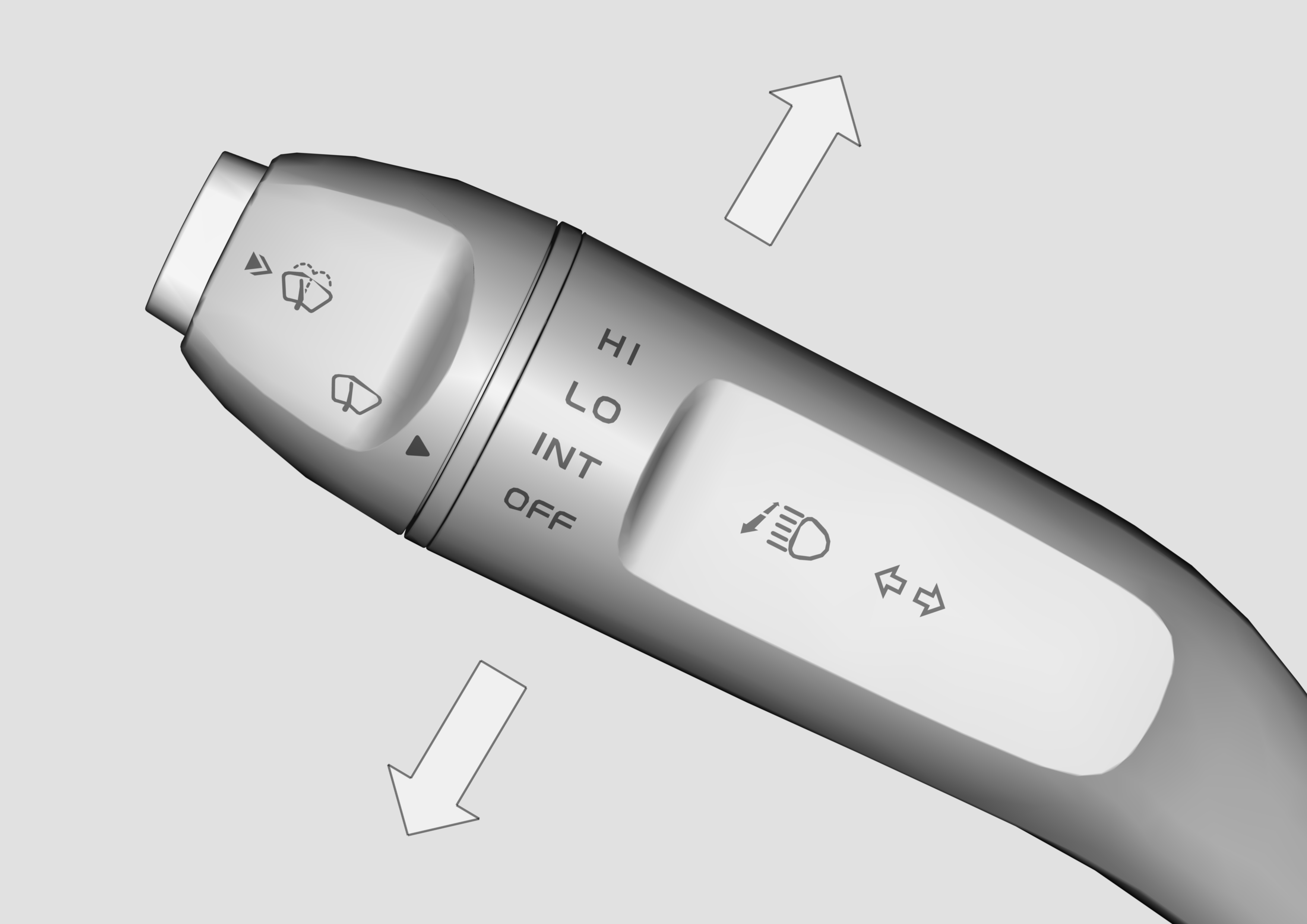 整车电源为ON时,上拨/下压灯光控制手柄,右/左转向灯闪亮。短时上拨/下压灯光控制手柄,相应方向的转向灯闪烁3次。